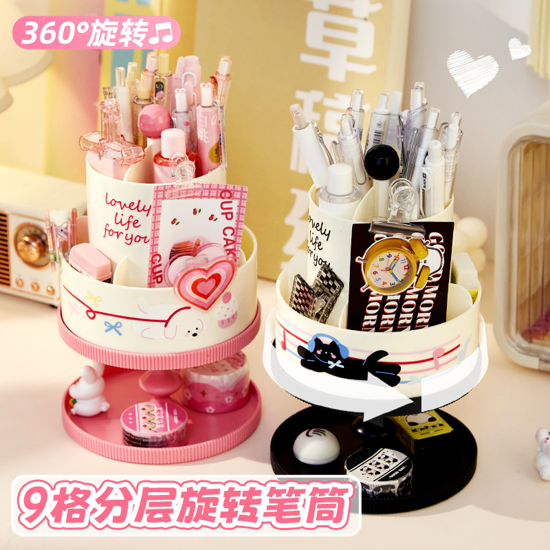 プリンセス风ペンホルダー収纳ボックス高颜値ins风大容量で360度回転可能子供女の子学生デスクトップ