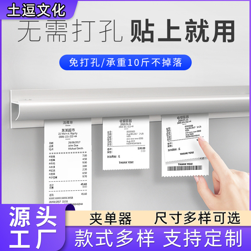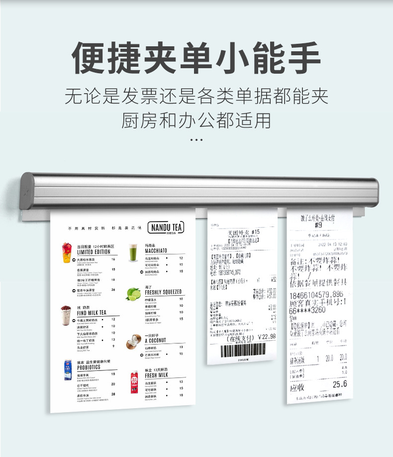厨房夹单神器外卖菜单夹固定器铝合金免打孔笔槽小票夹厨房夹单器