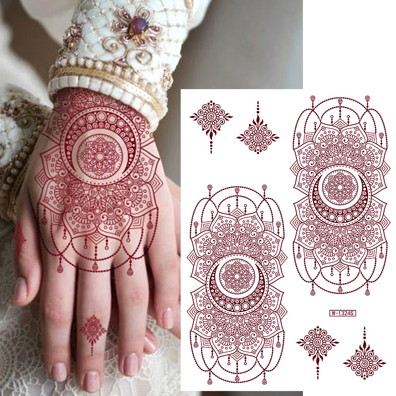 国境を越えた2025欧米のタトゥーはインドの海娜ブラウンの赤いレースのタトゥーのシールを貼ってカスタマイズします。