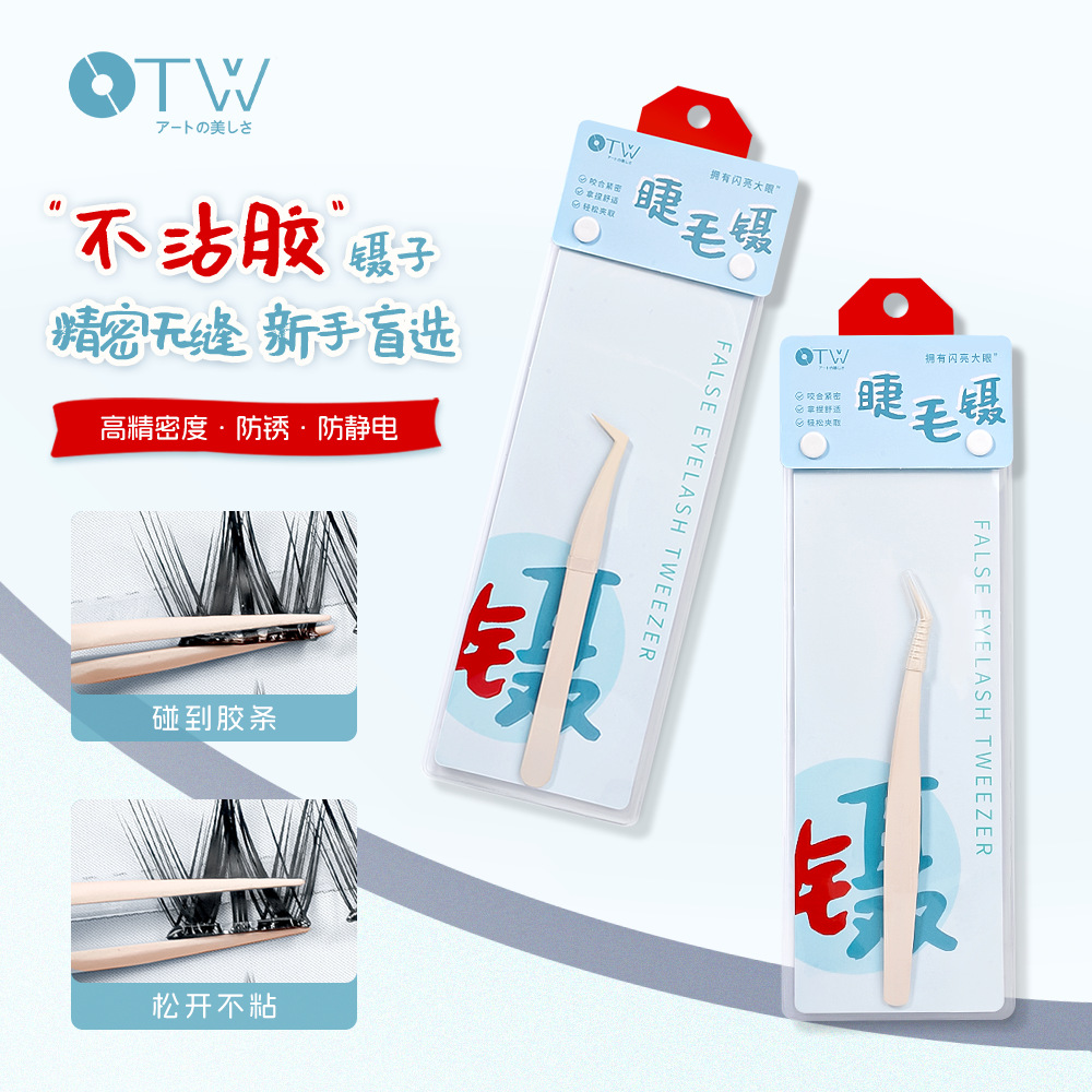 otw 粘着防止ピンセット、初心者向けの接着剤不使用のつけまつげ、まつげを傷つけない、7 文字のゴールデンフェザークリップ、非粘着ピンセット卸売