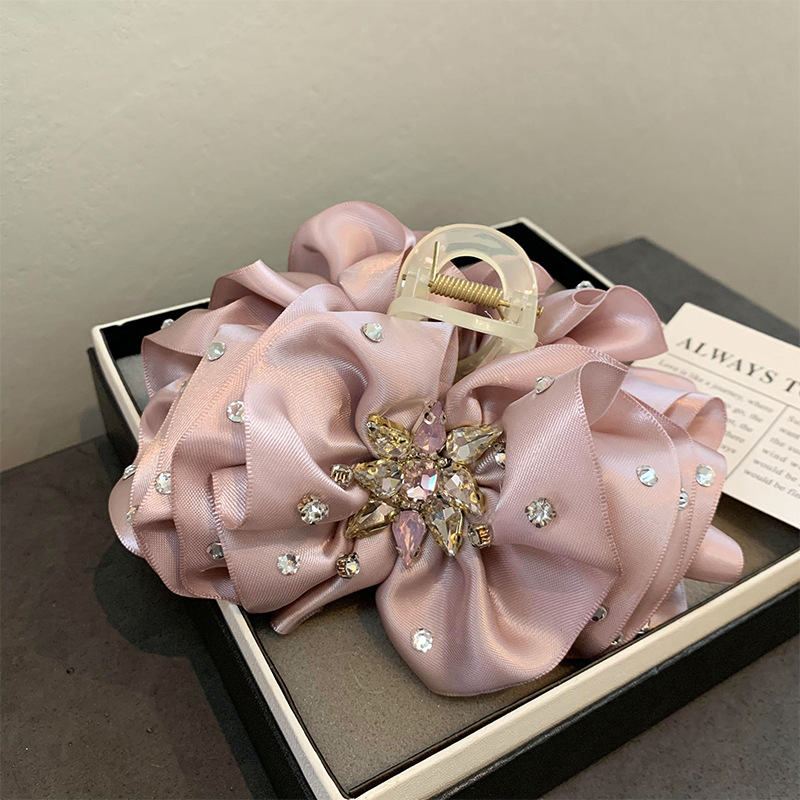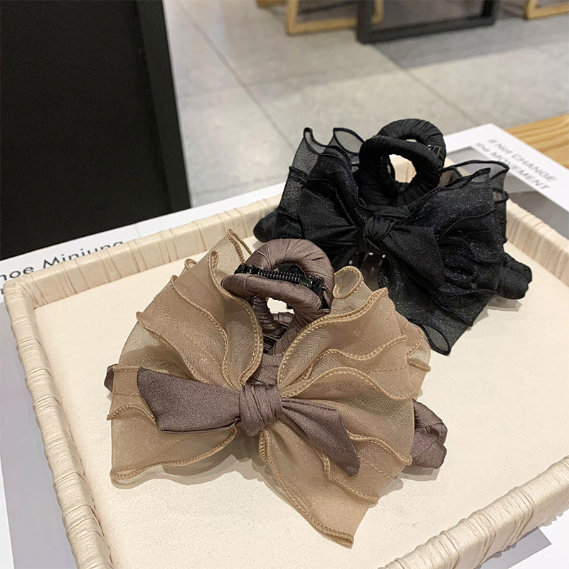 レトロなリボンヘアピン韓国風甘いオーガンザ大きなグラブクリップ後頭部ヘアサメクリップインターネット有名人のヘアアクセサリー