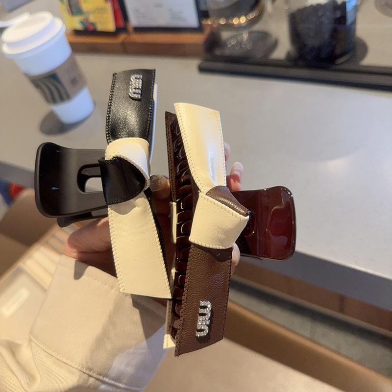 2025年に新韓国版高級感皮質気質文字サイズ13センチのクリップファッション盤髪サメクリップ