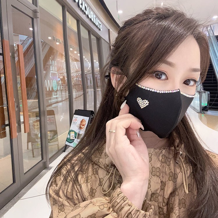 秋冬の新型アクセサリー薄紗二重綿布通気性ドリルマスク付き高顔値顔痩せ装飾マスク女性
