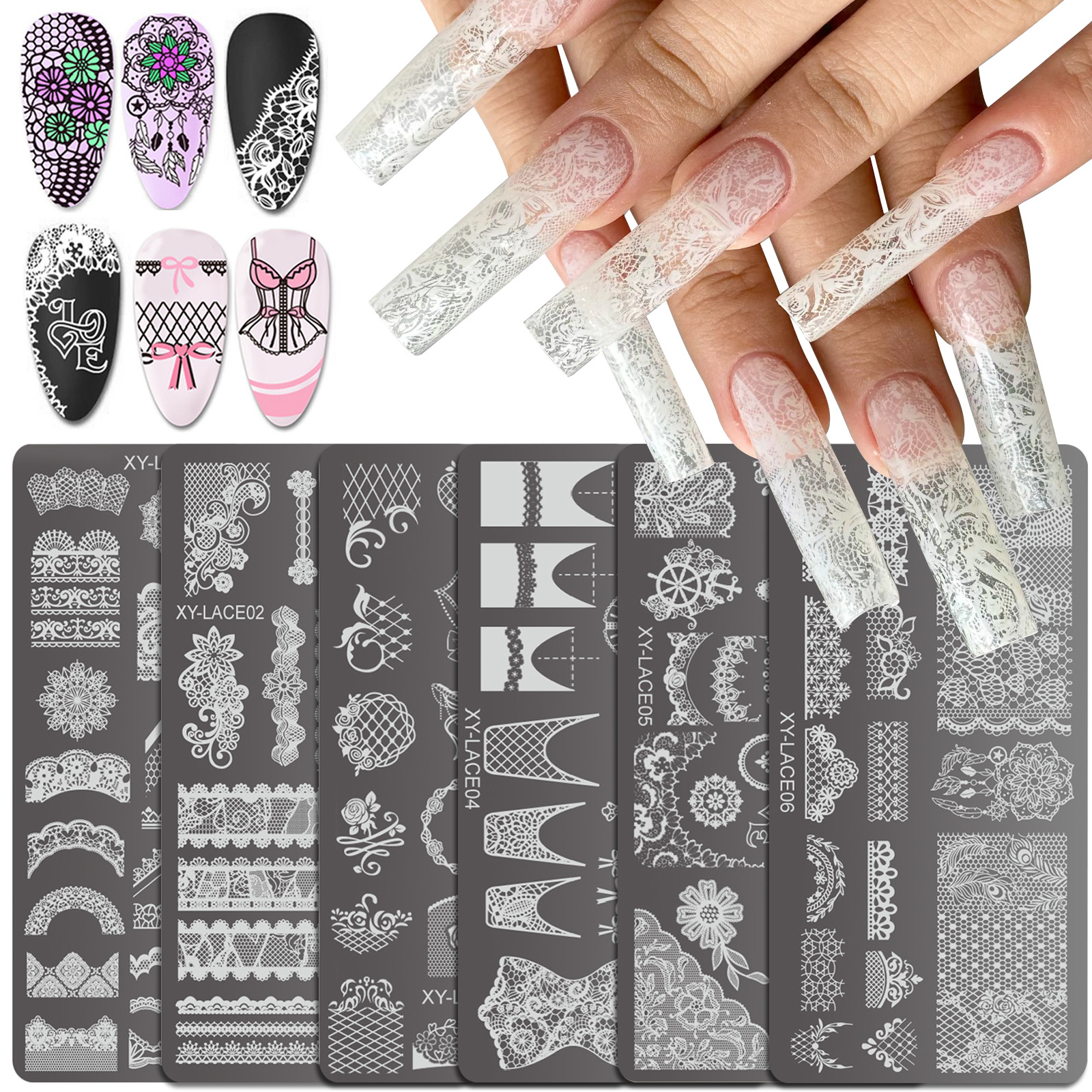新しいネイルアート印刷プレートフレンチ中空レース印刷接着剤転写鋼板チェック柄印刷テンプレート浙江蝶