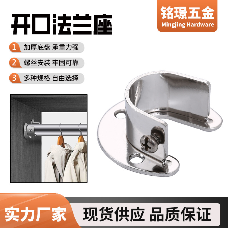 特厚不锈钢开口法兰座衣柜挂衣杆杆托衣杆底座固定配件圆管法兰座