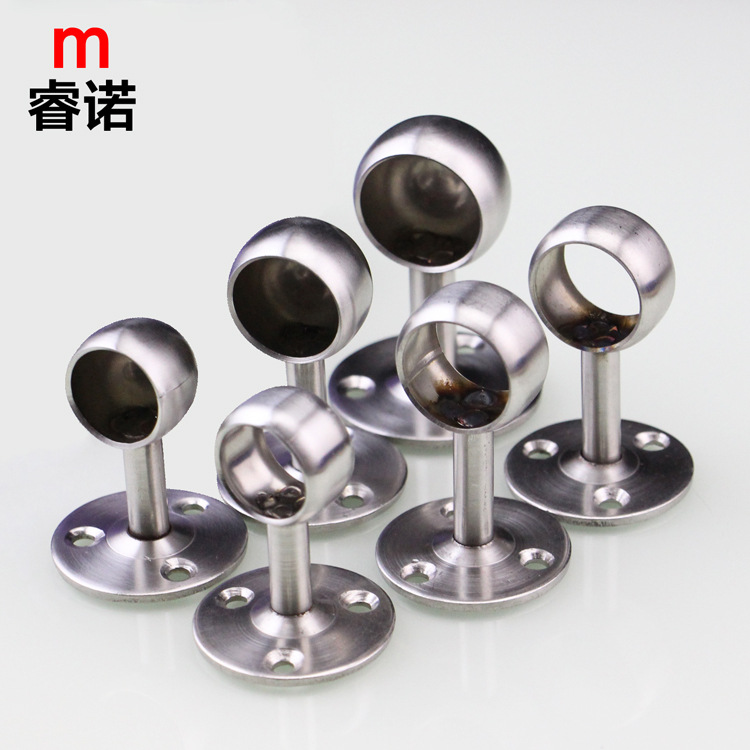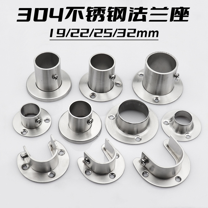 不锈钢加厚开口法兰座衣杆座高脚衣圆管座毛巾管座窗帘杆座批发