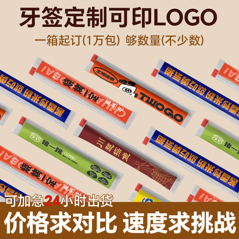 一次性牙签独立包装logo印广告餐厅酒店单头牙签小包商用