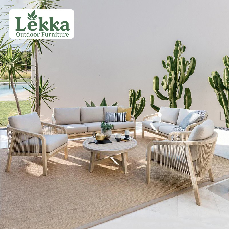 オーダーメード北欧アウトドアチーク材ソファホテル別荘バルコニーソファ茶何民宿屋外ガーデン籐編み家具