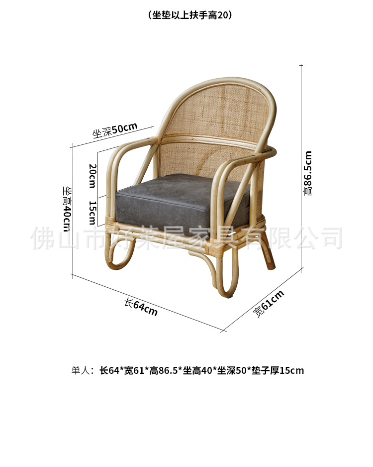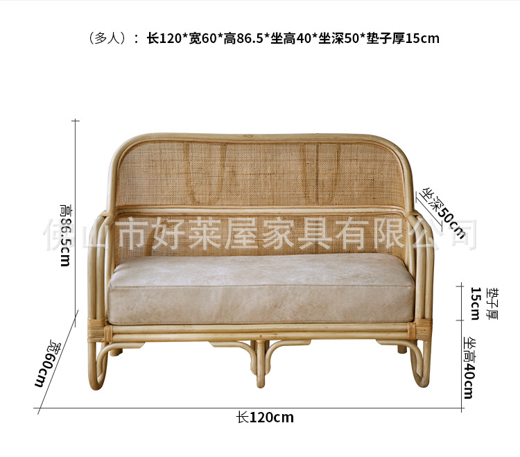 日本式藤編二人位ソファー天然瑪瑙藤小戸型藤椅子カジュアルシンプルシングルソファー椅子セット