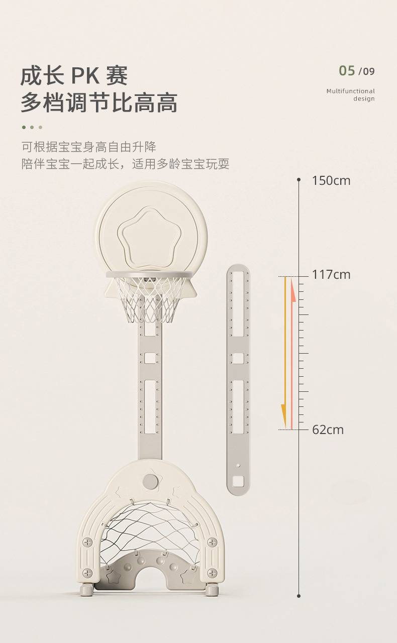 ハービーの木の子供のバスケットボールのラックはバスケットボールの枠の室内を昇降することができます。
