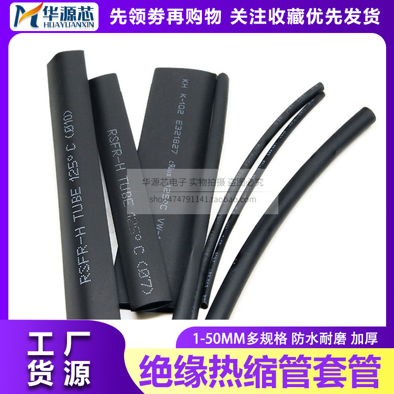 黒色超薄熱収縮チューブ低温収縮チューブ超薄非難燃性収縮チューブ径0.8-20mm