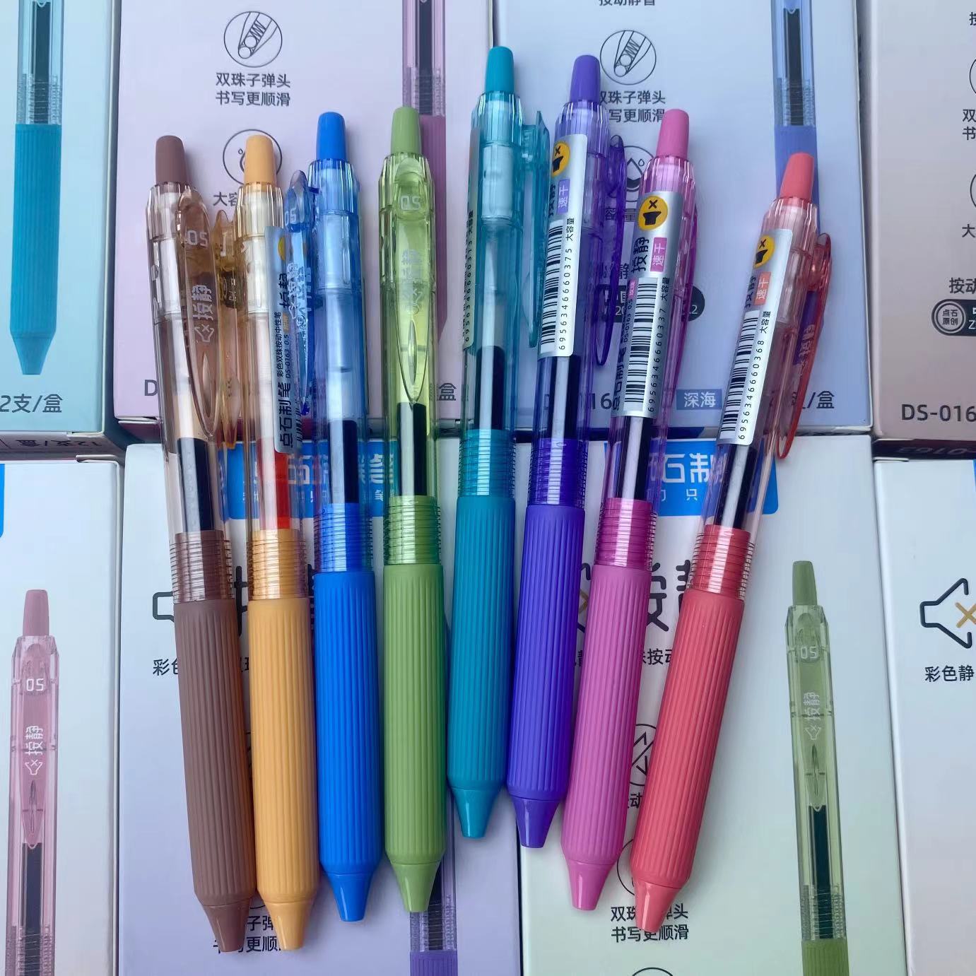 点石0163押し静音双珠中性ペンソフトグリップゴム速乾全針管頭大容量黒ブラシ問題ペン