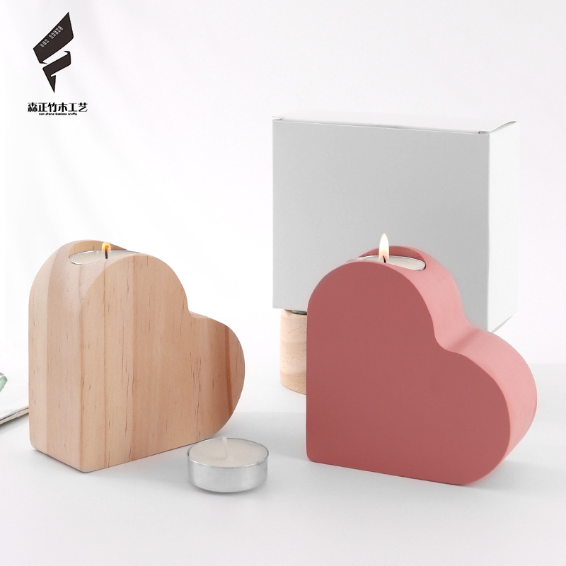 松木ハート型燭台ins風クリスマス万聖バレンタインデー装飾、卸売りカスタム家庭実木燭台