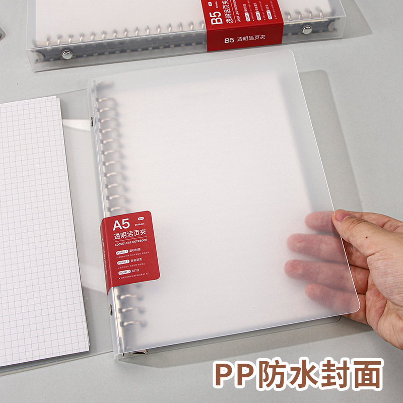 商品名称:A4多功能收纳夹透明pp活页夹A5B5搭扣笔记本活页本塑料外壳活页夹