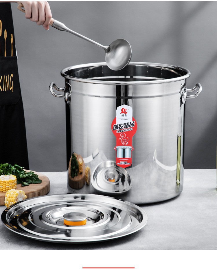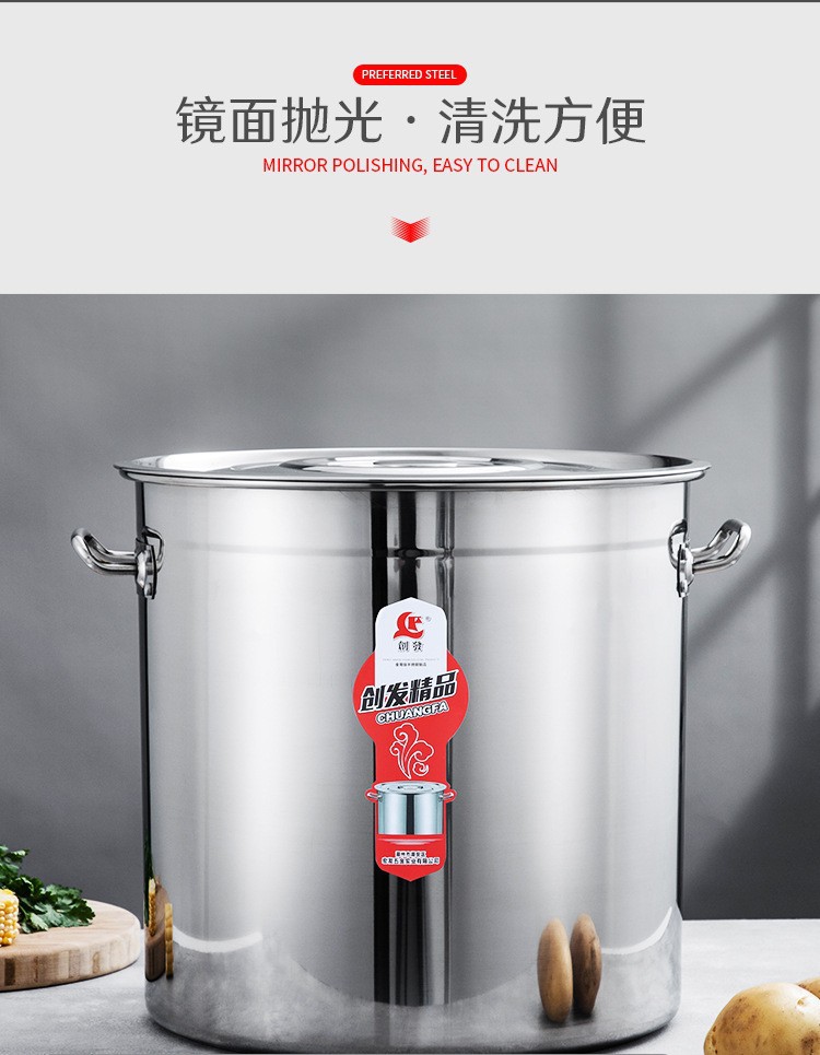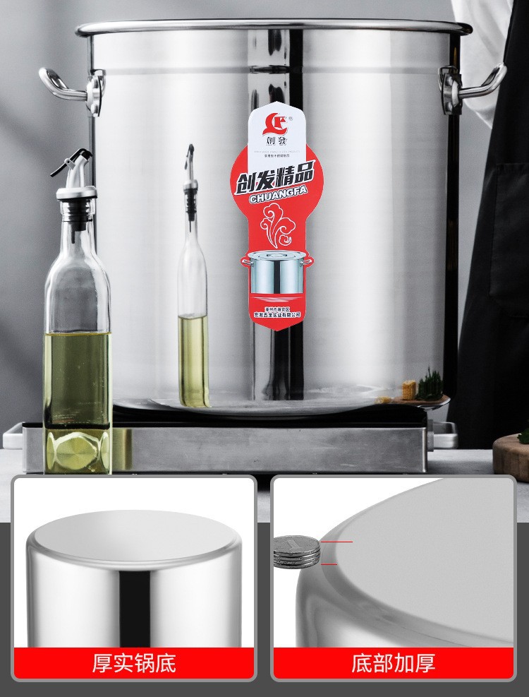 创发食品级304不锈钢桶特厚带盖商用双耳大容量汤桶汤锅桶卤肉锅