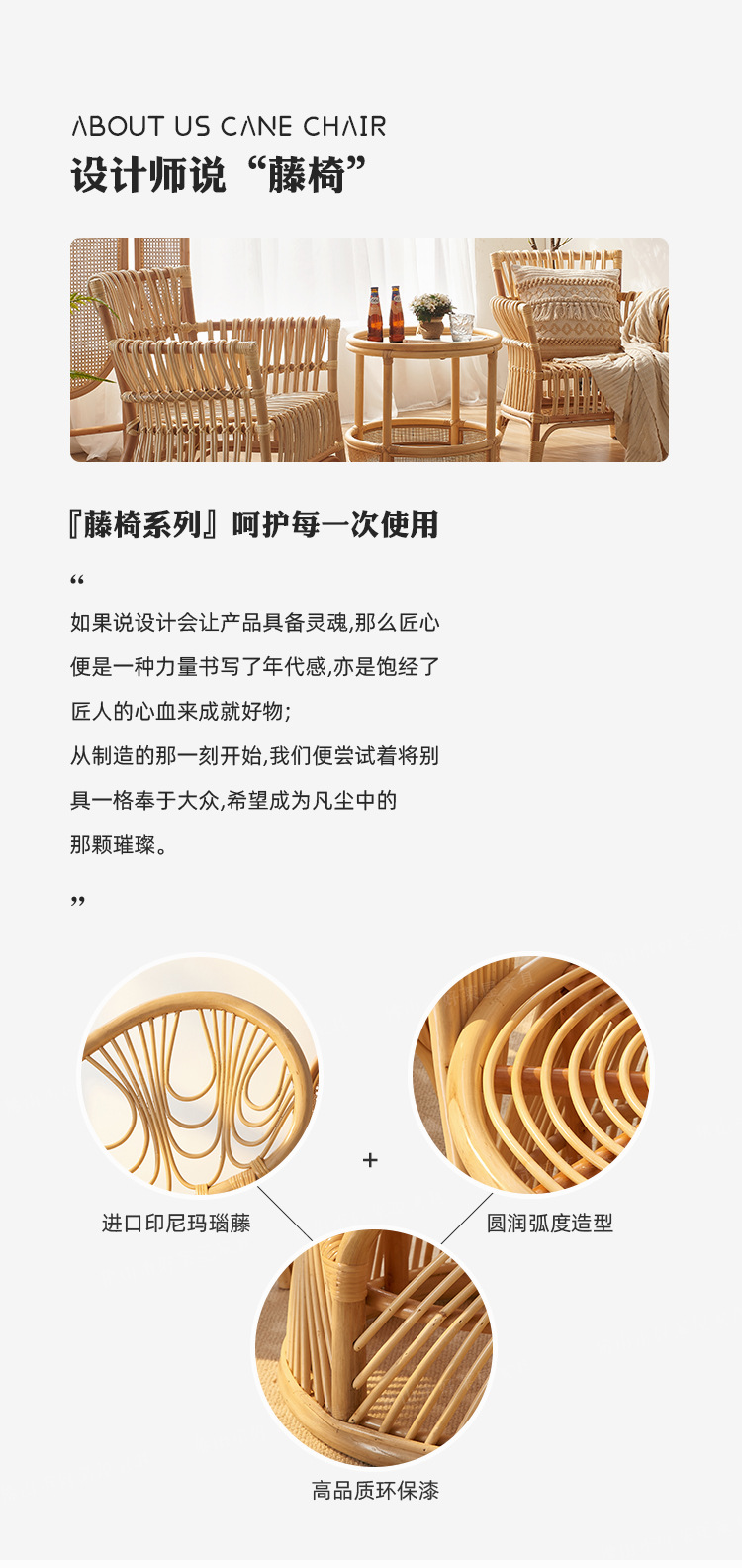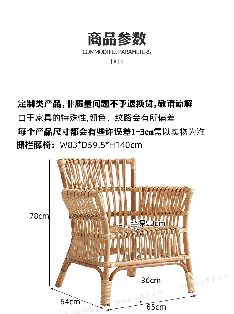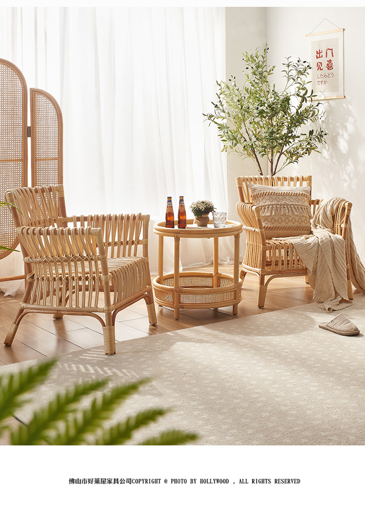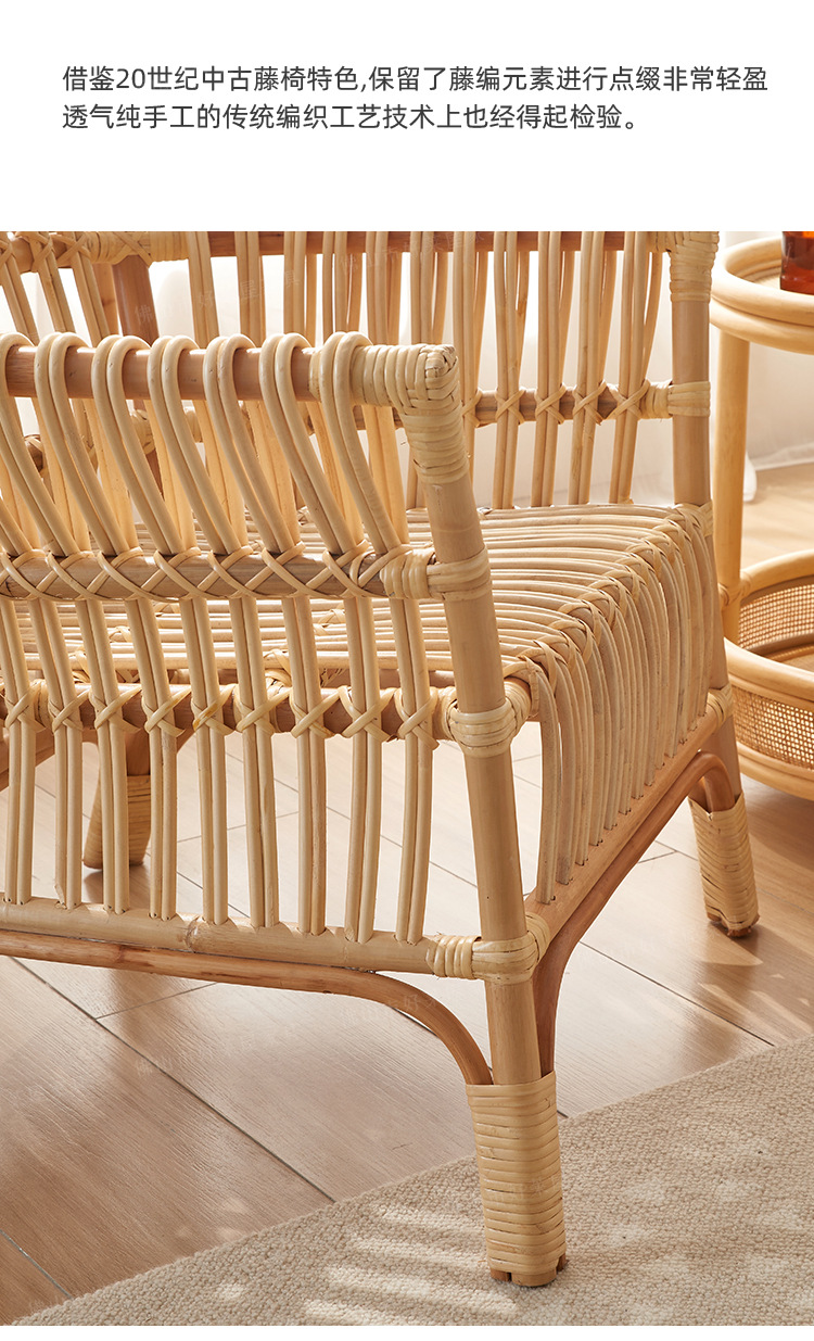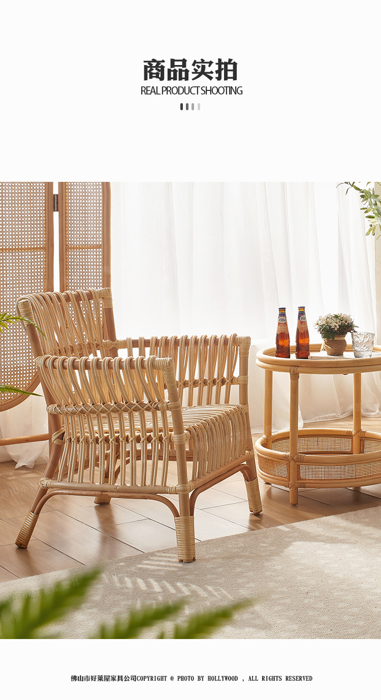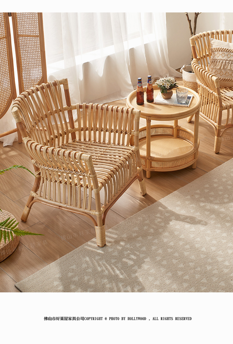 天然インドネシア藤椅子東南アジア藤編み手すり背もたれ椅子民宿客間編み家庭用ベランダレジャー椅子