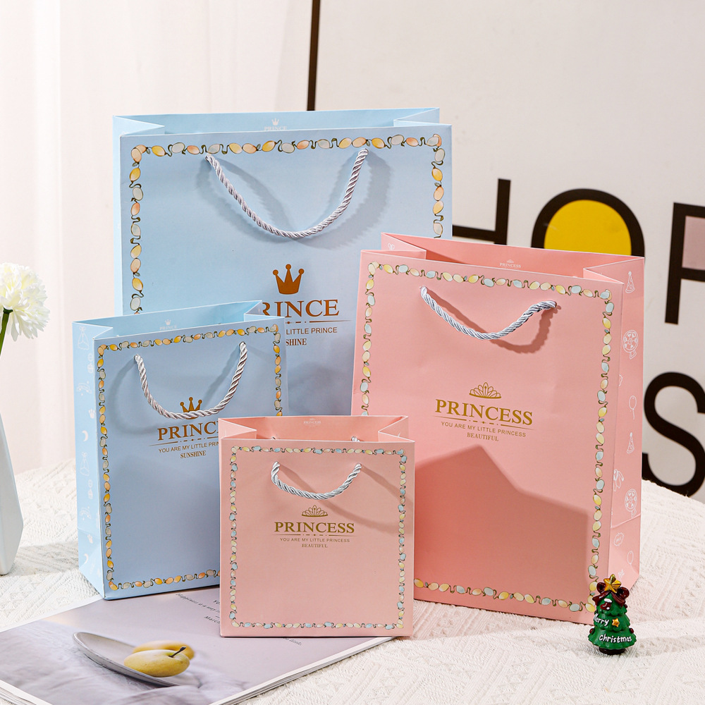 メーカー直販現物手提げ紙袋トランペットピンククラウンプレゼント袋ins誕生日ギフトボックス包装紙袋
