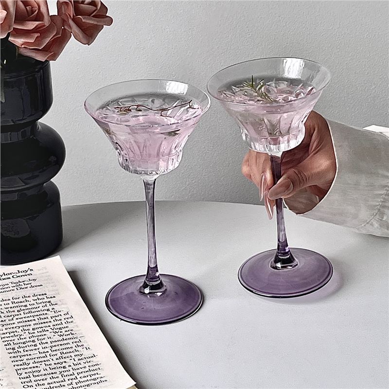 高级感紫色高脚玻璃杯家用轻奢女生创意艺术微醺调酒香槟鸡尾酒杯