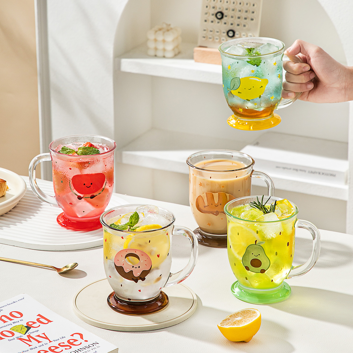 卡通玻璃杯家用高脚杯高颜值水杯女2025新款果汁杯咖啡杯奶茶杯