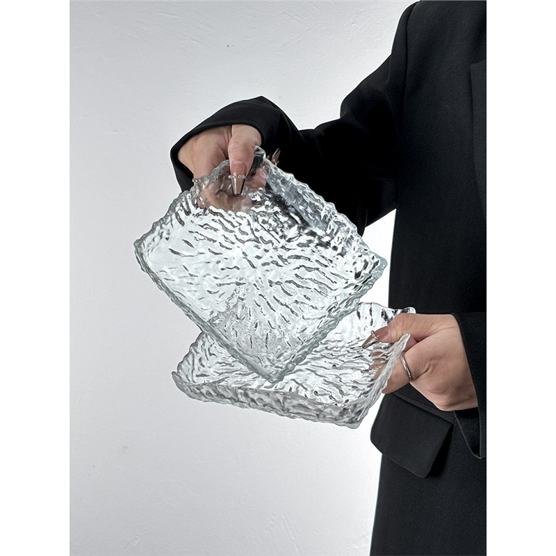 インススタイル氷河パターンスクエアプレートガラスパーソナライズニッチかわいいフルーツナッツプレートケーキデザートプレート