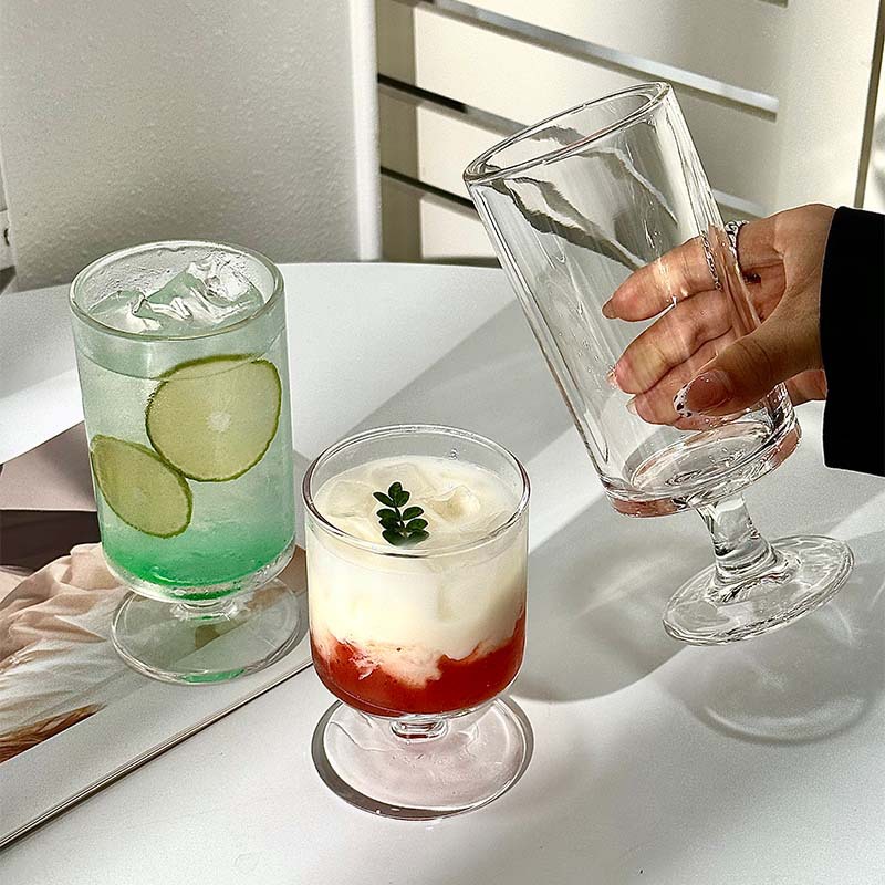 二吧高颜值ins网红直筒玻璃杯高脚杯家用果汁杯鸡尾酒杯饮料杯子