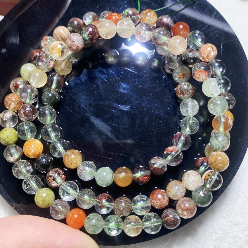 天然多宝手链,有红草莓、绿草莓、黄水晶、紫水晶穿搭而成,天然无优化无处理。需要其它尺寸或者级别可以联系客服,量大价格可调。