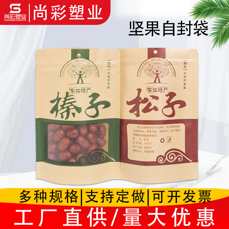 窓を開けて透明なドライナッツの自封袋卸売りクラフト紙包装袋松子榛子食品包装袋を厚くする