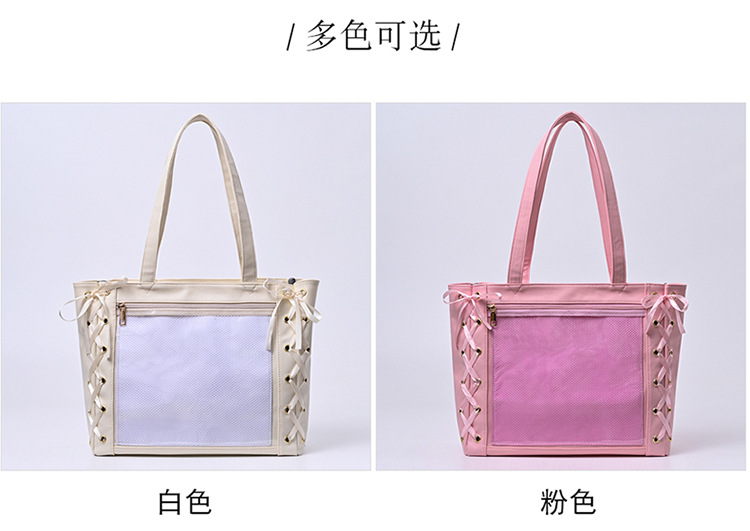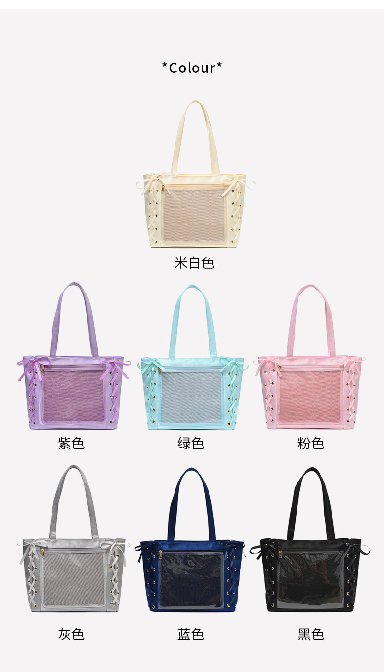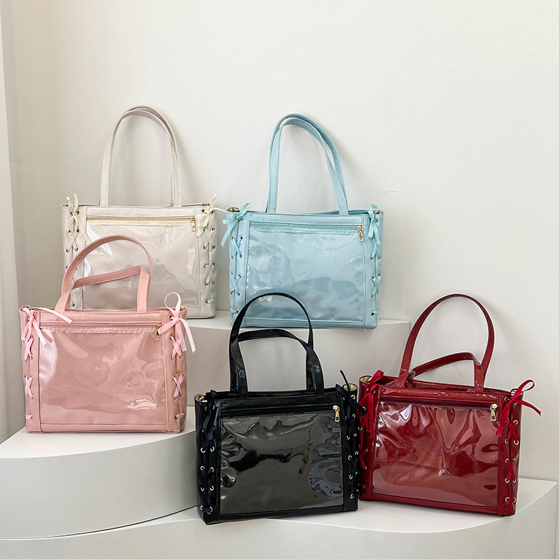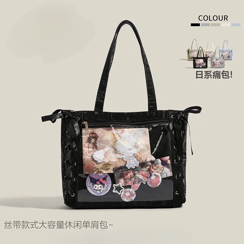 国境を越えた甘い女の子大容量トートバッグ女性の二次元透明小さな新鮮なショルダーバッグ日本のリボン痛バッグ