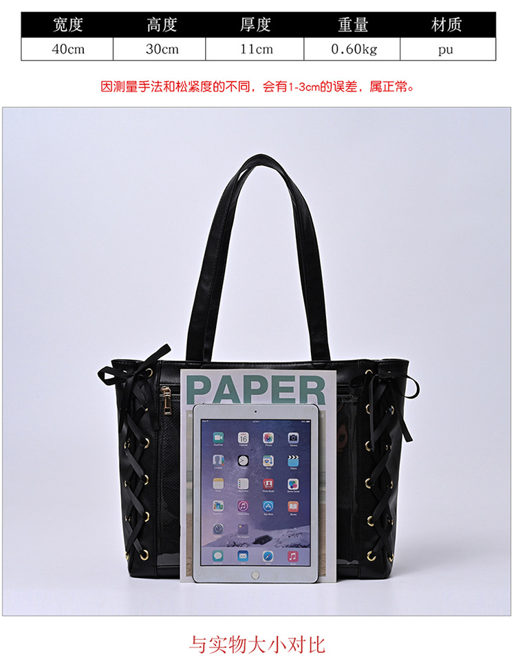 新型リボン痛包日系大容量女性日系新型ソフト妹JK少女二次元ソフト皮透明シングル肩