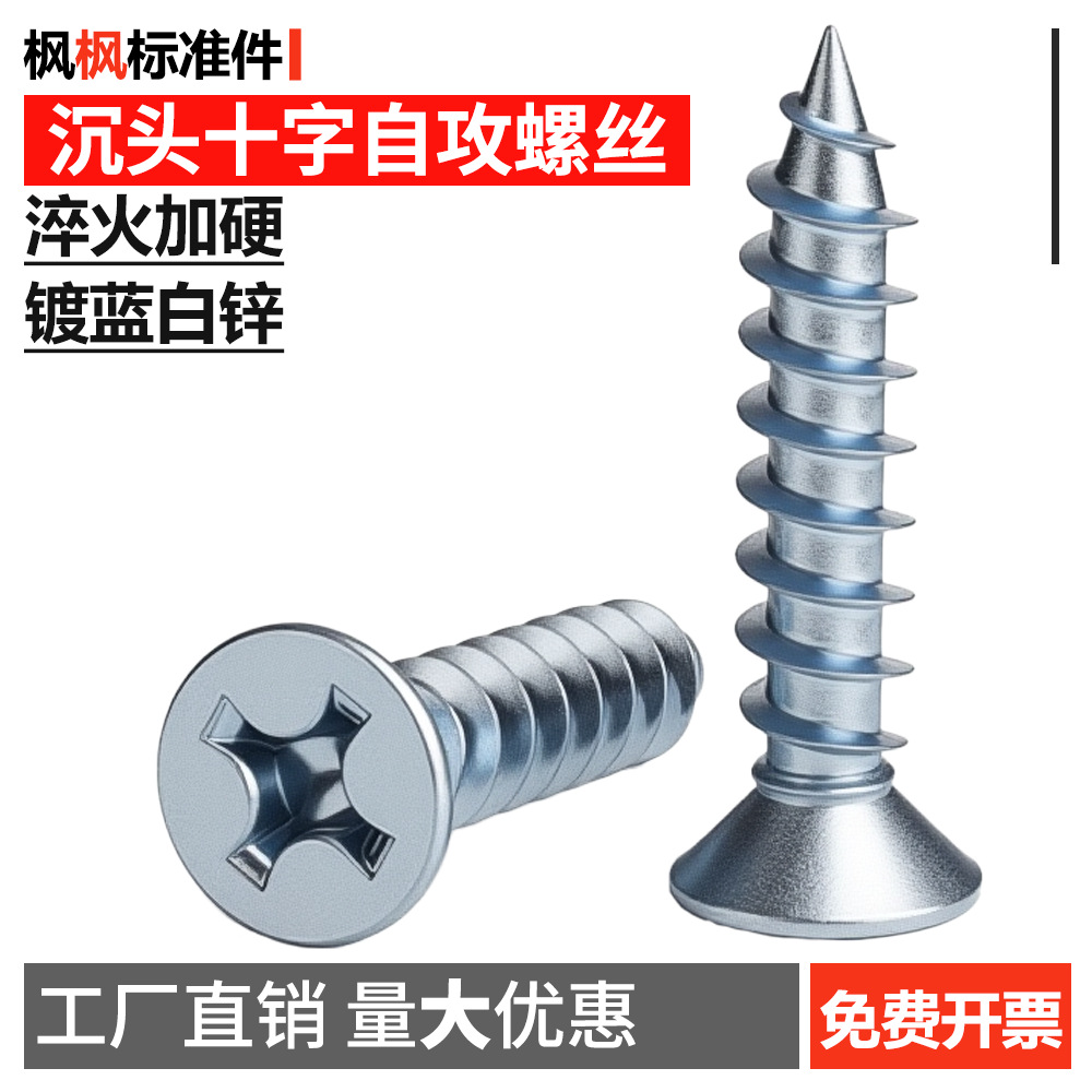 硬化処理された青白亜鉛メッキ皿頭十字セルフタッピンねじ、平頭ねじ、GB846規格締結具付属品卸売