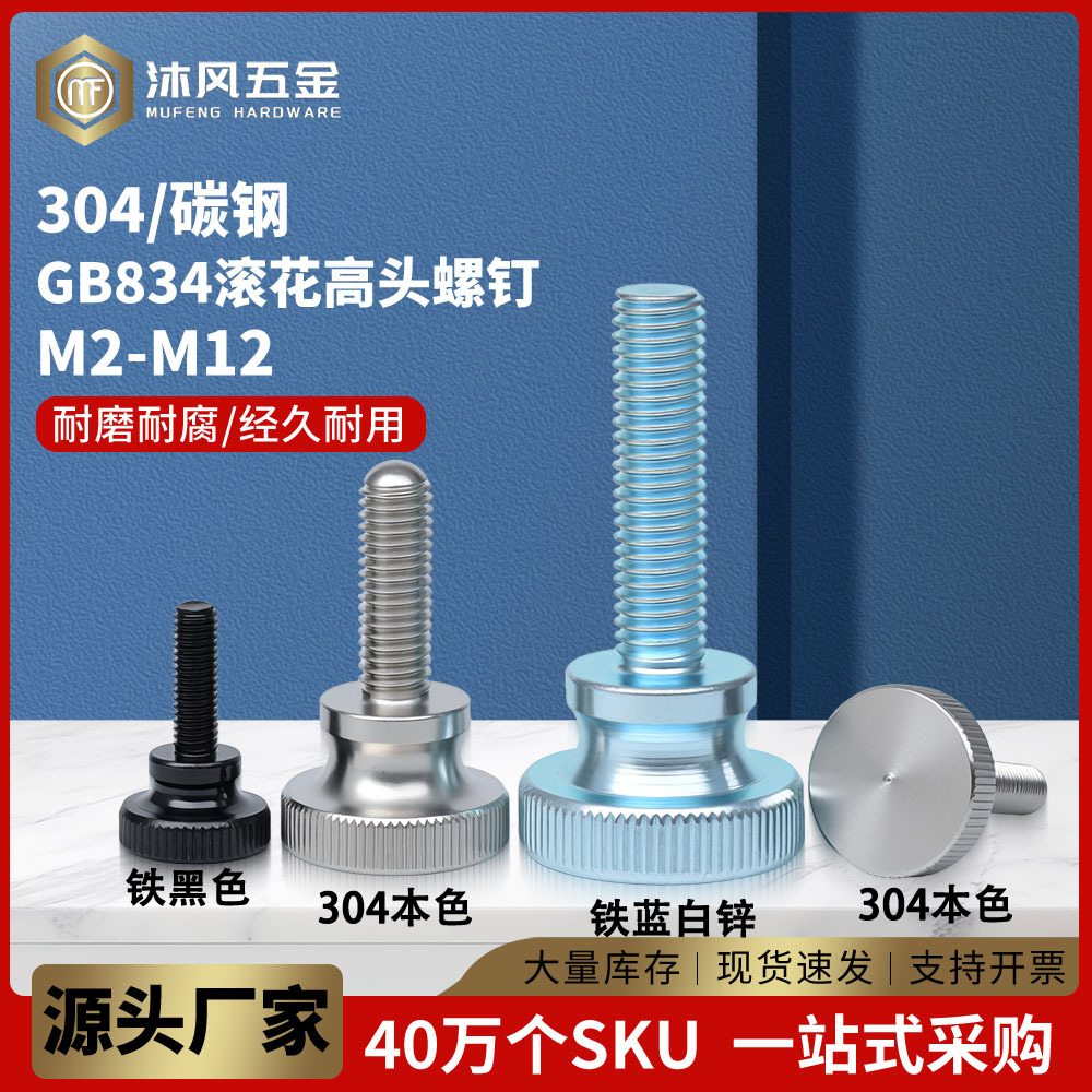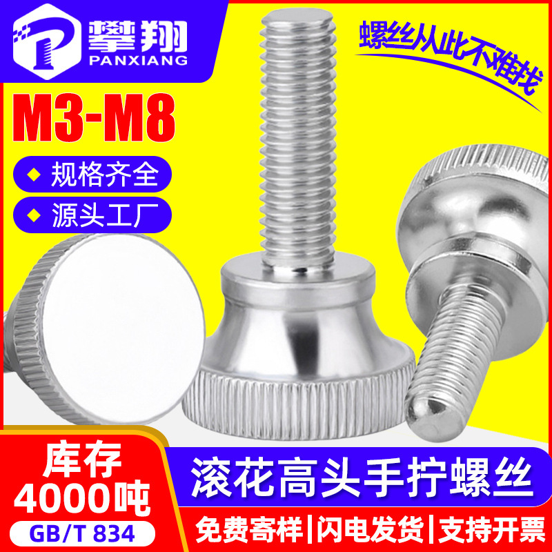 铁镀镍高头滚花手拧螺丝手扭调节滚花螺丝弹弓手扭螺钉M3M4M5M6M8