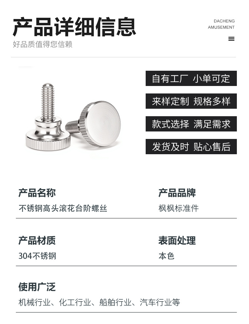 现货GB834滚花手拧螺丝304不锈钢高头竖纹手扭台阶二层螺钉M2-M12