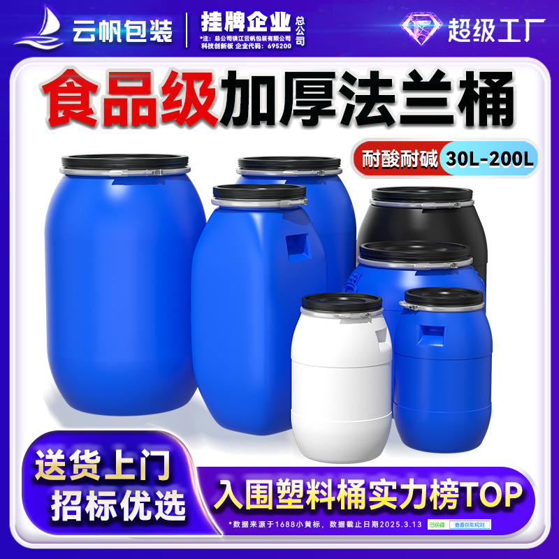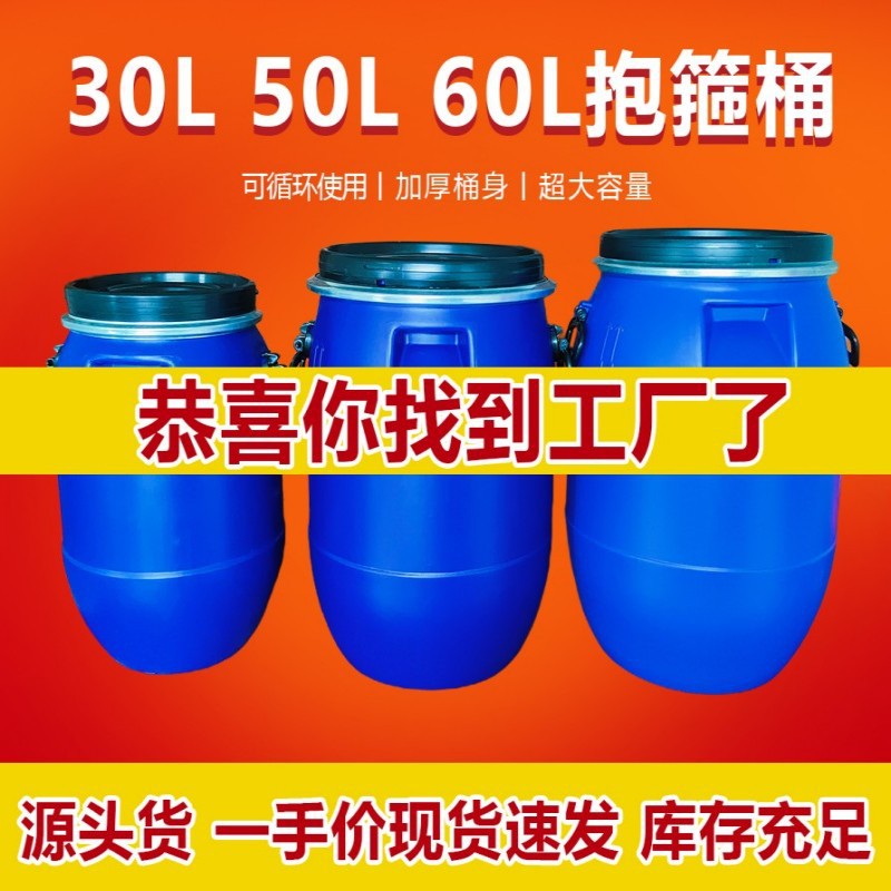 加厚化工油脂桶废液桶发酵桶带盖工业用双环桶3050 60L法兰抱箍桶