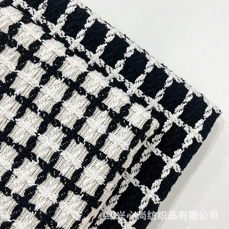 粗紡色織小香風無地質感毛生地秋冬新作白黒生地女装靴帽生地