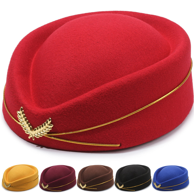 ウールベレー帽スチュワーデス帽子工場直販高速鉄道女性スチュワーデス帽子ホテルフロントウェイター制服帽子