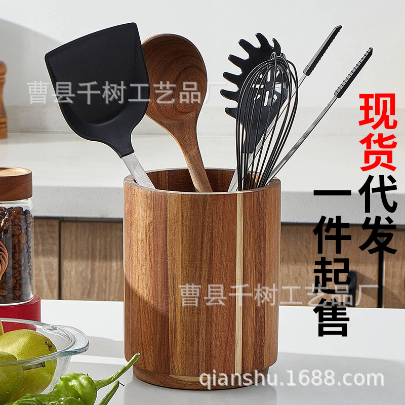 在庫あり アカシア材木製食器収納ボックス 回転式食器収納とラウンドデスクトップ無垢材キッチン用品ボックス
