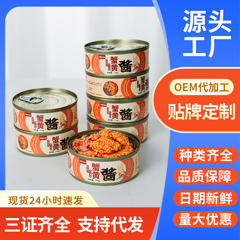 工厂批发代发拌饭拌面酱110g罐装蟹黄罐头下饭酱油浸调味蟹黄酱