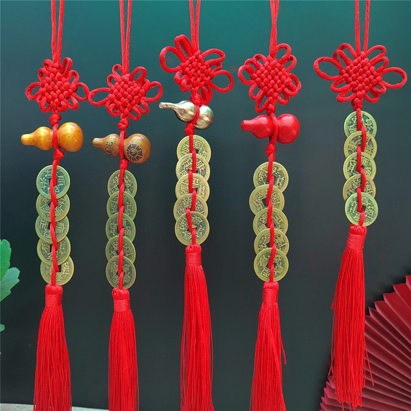 ドアツードア五帝マネーペンダント縁起の良い結び目銅ひょうたんペンダント Fulu Ankang 五帝マネー本物の縁起の良いペンダント
