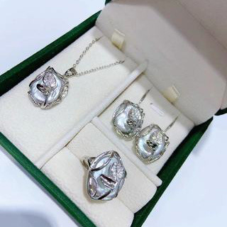 天然淡水真珠バロックネックレスセット卸売り女性アクセサリー指輪ペンダントピアス3点セットbt341