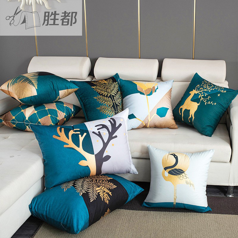 勝都北欧風ライトラグジュアリー枕、ベッド装飾用クッション、両面プリント、窓辺、リビング、ソファ用クッションカバー