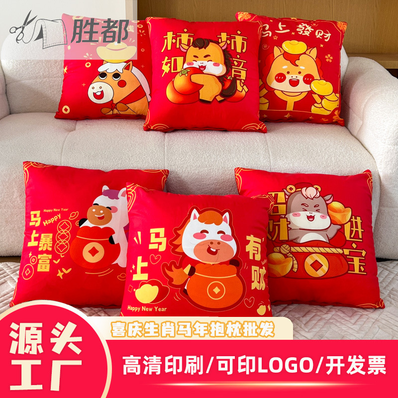 胜都2026新款马年抱枕靠垫新年大红喜庆礼品靠枕定制LOGO抱枕套