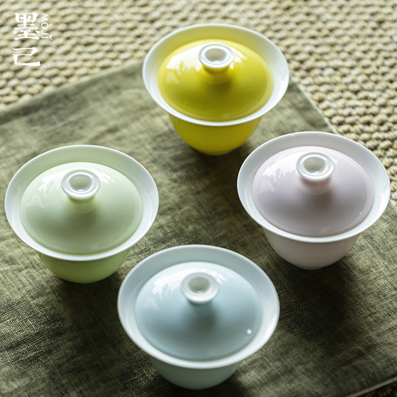 墨己西柚茉莉陶磁器三才蓋碗カンフー茶道具陶磁器敬茶碗家庭用新派現代茶碗