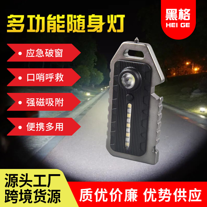 国境を越えた新しいキーホルダーライトtype-c充電多機能緊急ランプが歩哨安全ハンマーミニ懐中電灯を求めている