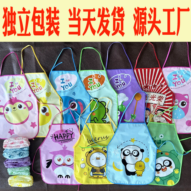 義烏子供用エプロン、お絵描きエプロン、漫画柄子供用防水防油卸売袖カバー、よだれかけ、つなぎ服セット
