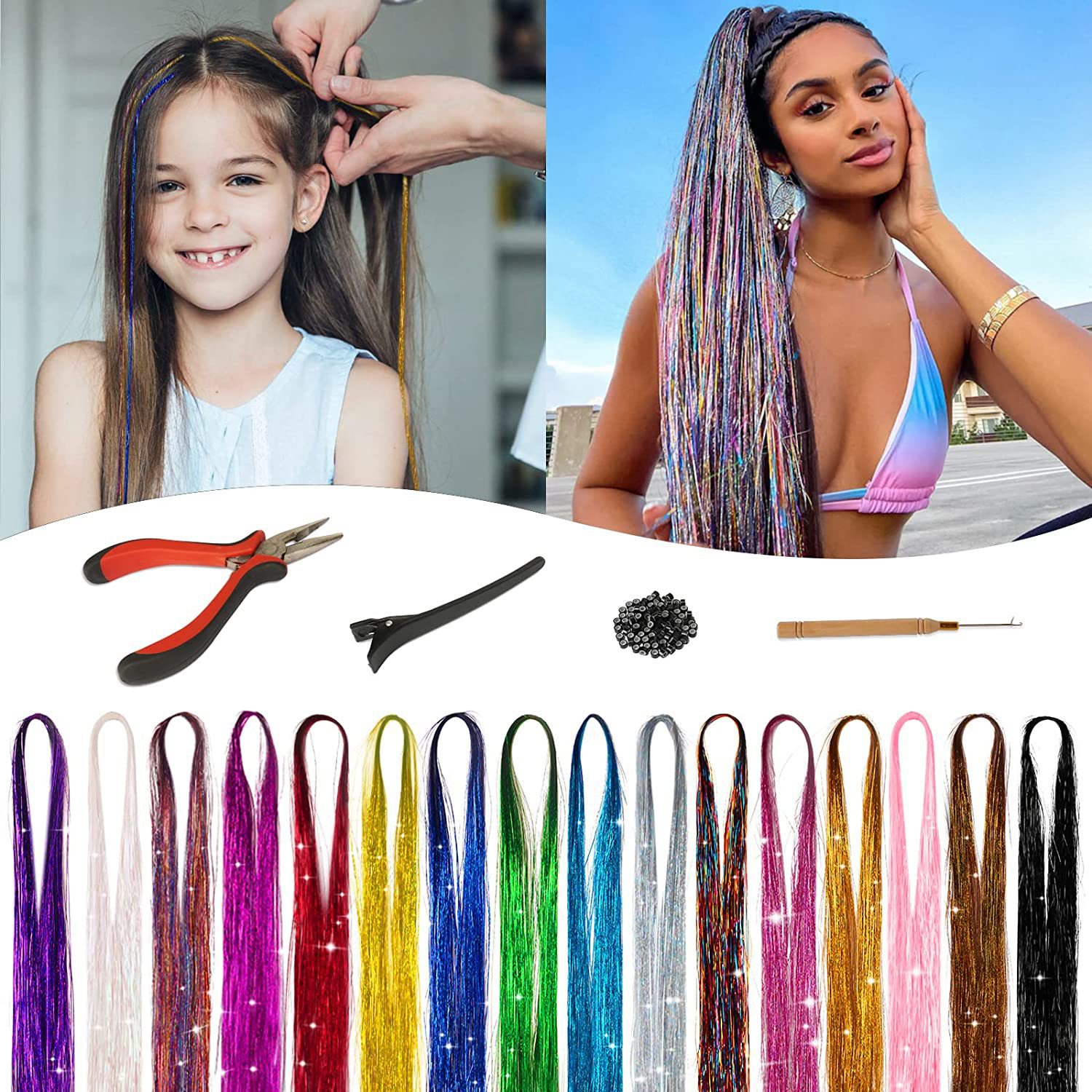 クロスボーダーの外国貿易のまぶしいレーザーの髪のカラーの1つのクリップの髪の切れのまっすぐな金糸の七彩の明るい糸はレーザーの髪の切れを発射します。