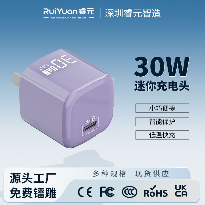 Huawei Apple 17充電器に適しています。アイスクリスタルミニPD30W窒化ガリウム充電ヘッドGaN急速充電ヘッドフラッシュ充電。