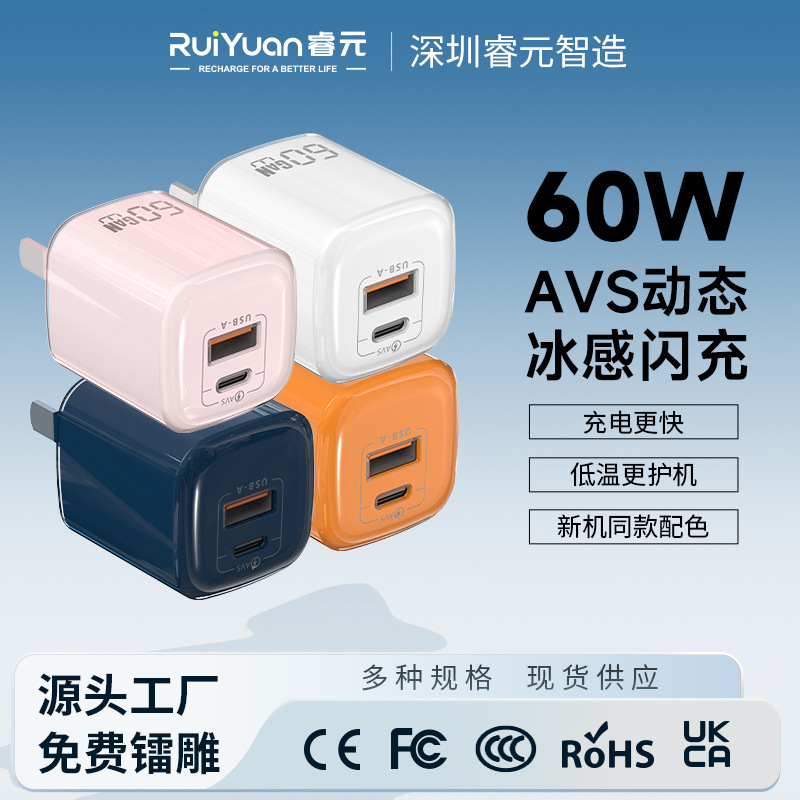 适用苹果IPHONE17动态40WAVS协议60W充电器PD45W双口氮化镓充电头