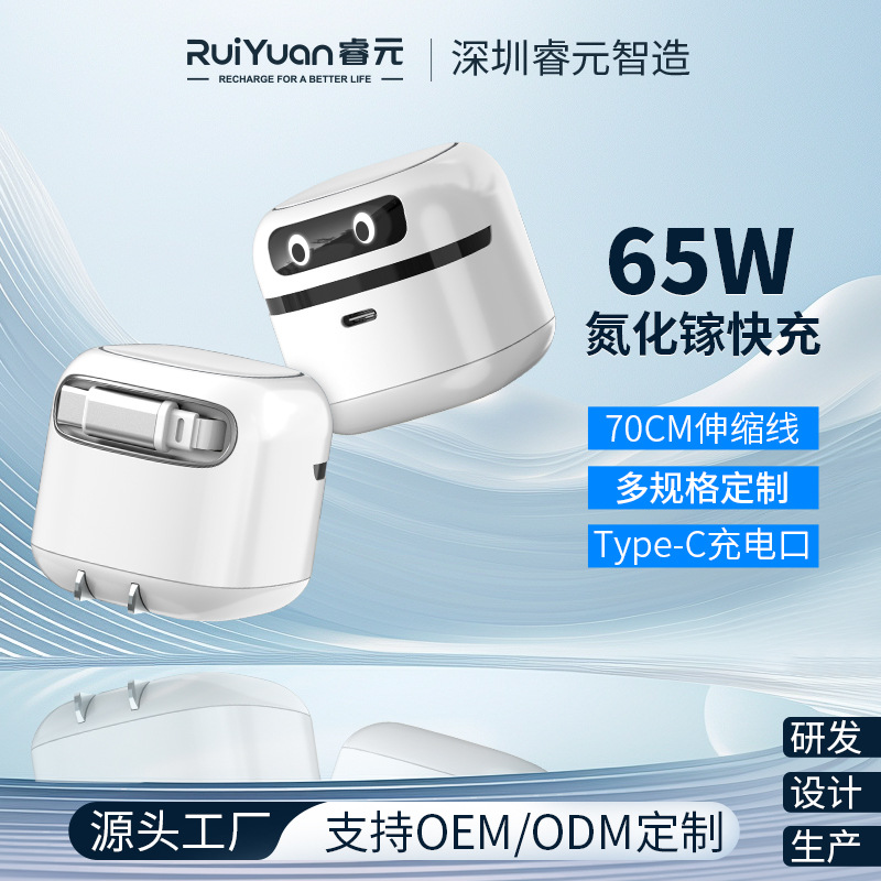 伸縮ケーブル付きクロスボーダーPD65W窒化ガリウム充電器、Type-c急速充電ヘッド、Appleノートブックに適しています、米国規格