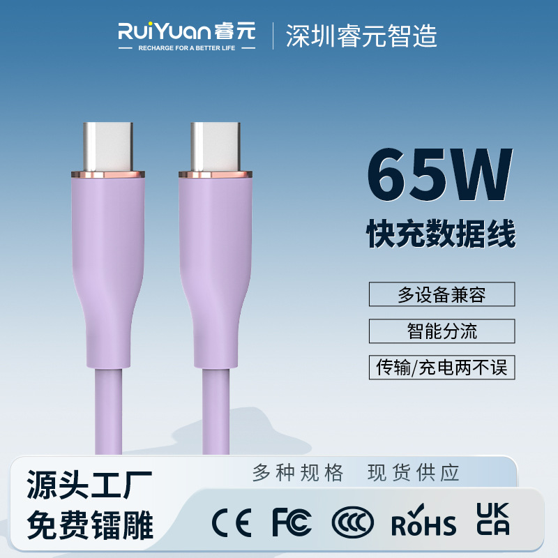 液体シリコン製Type-Cデータケーブル、PD65WデュアルCポート急速充電ケーブル、Apple、Huaweiの携帯電話やコンピューターに対応