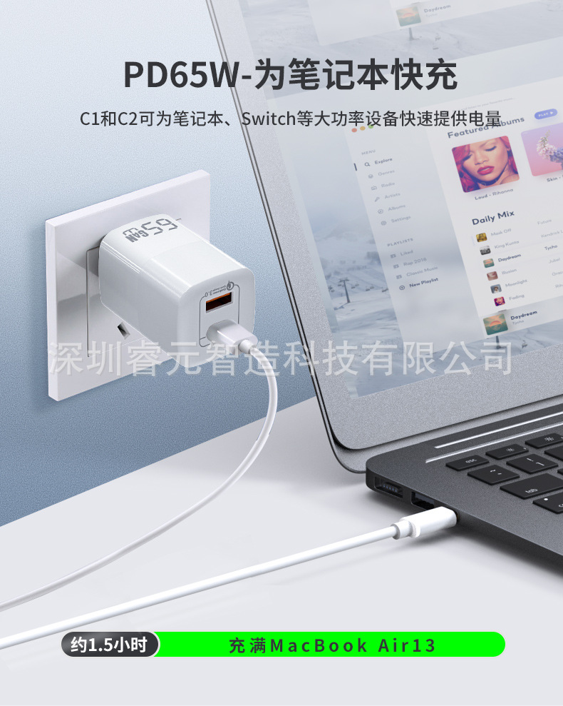 私模手机充电器快充全兼容氮化镓笔记本ov全品牌手机快充充电头